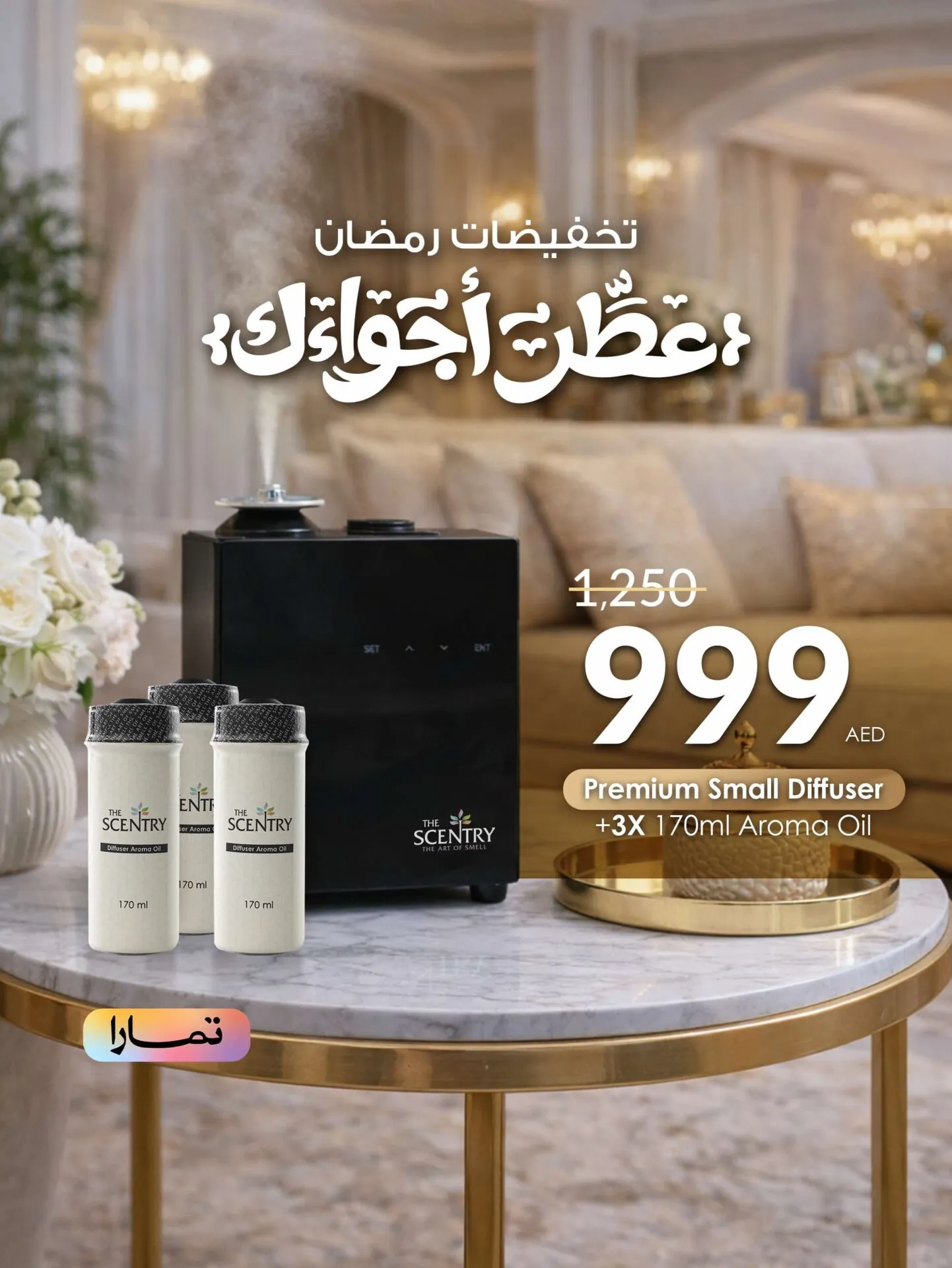 Premium Small Diffuser + 3X 170ml Aroma Oil ( تخفيضات رمضان )